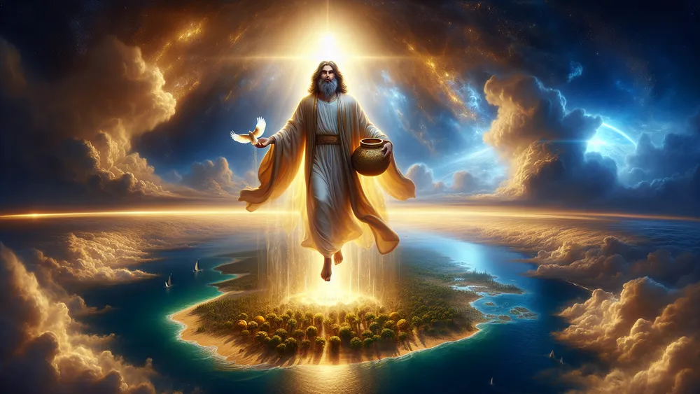 At the start, land did not exist. Everywhere, there was only water, spreading endlessly with no solid ground, no form, only deep emptiness. Olodumare, the highest god, decided things should not stay this way. He wanted to make a world with earth, plants, and life. Olodumare did not shape the world himself but gave the job to Obatala, one of the Orishas.